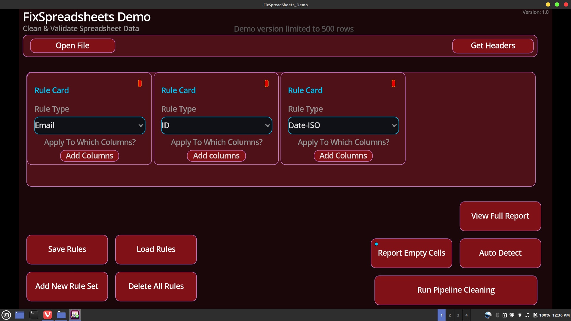 Save yourself hours of manually looking through spreadsheets for errors. Convert your spreadsheet into a CSV and have it run through FixSpreadsheets. FixSpreadsheets will clean and normalize your data while reporting back where in your spreadsheet errors have occurred. My developer philosophy is that software should be plug-and-play. As such, FixSpreadsheets uses a simple rule card system, making it as easy to use as possible.