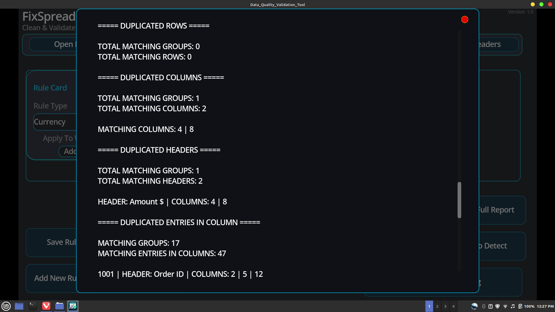 Detect empty cells, duplicate rows/columns, duplicated entries in columns, and invalid entries