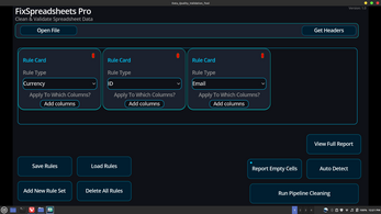 Save yourself hours of manually looking through spreadsheets for errors. Convert your spreadsheet into a CSV and have it run through FixSpreadsheets. FixSpreadsheets will clean and normalize your data while reporting back where in your spreadsheet errors have occurred. My developer philosophy is that software should be plug-and-play. As such, FixSpreadsheets uses a simple rule card system, making it as easy to use as possible.